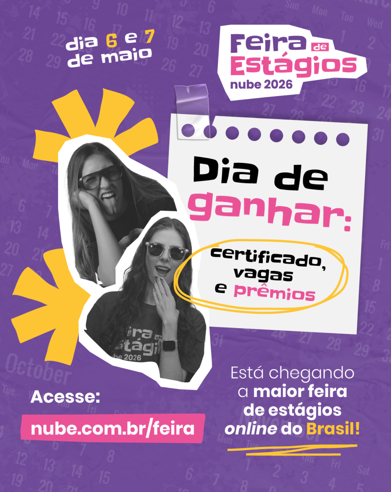 Então anote na agenda: 6 e 7 de maio acontece a Feira de Estágios Nube 2026