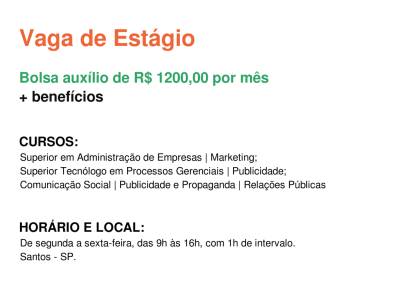 - O horário da monitoria será combinado em conjunto com a coordenação do curso.