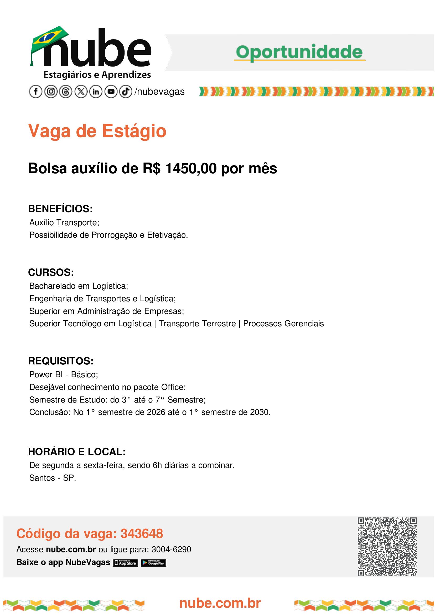Se você está em busca de uma oportunidade para iniciar sua trajetória profissional com aprendizado, responsabilidade e crescimento, inscreva-se e faça parte dessa experiência transformadora. Interessados devem se inscrever em:👉 nube.com.br Não perca essa de […]